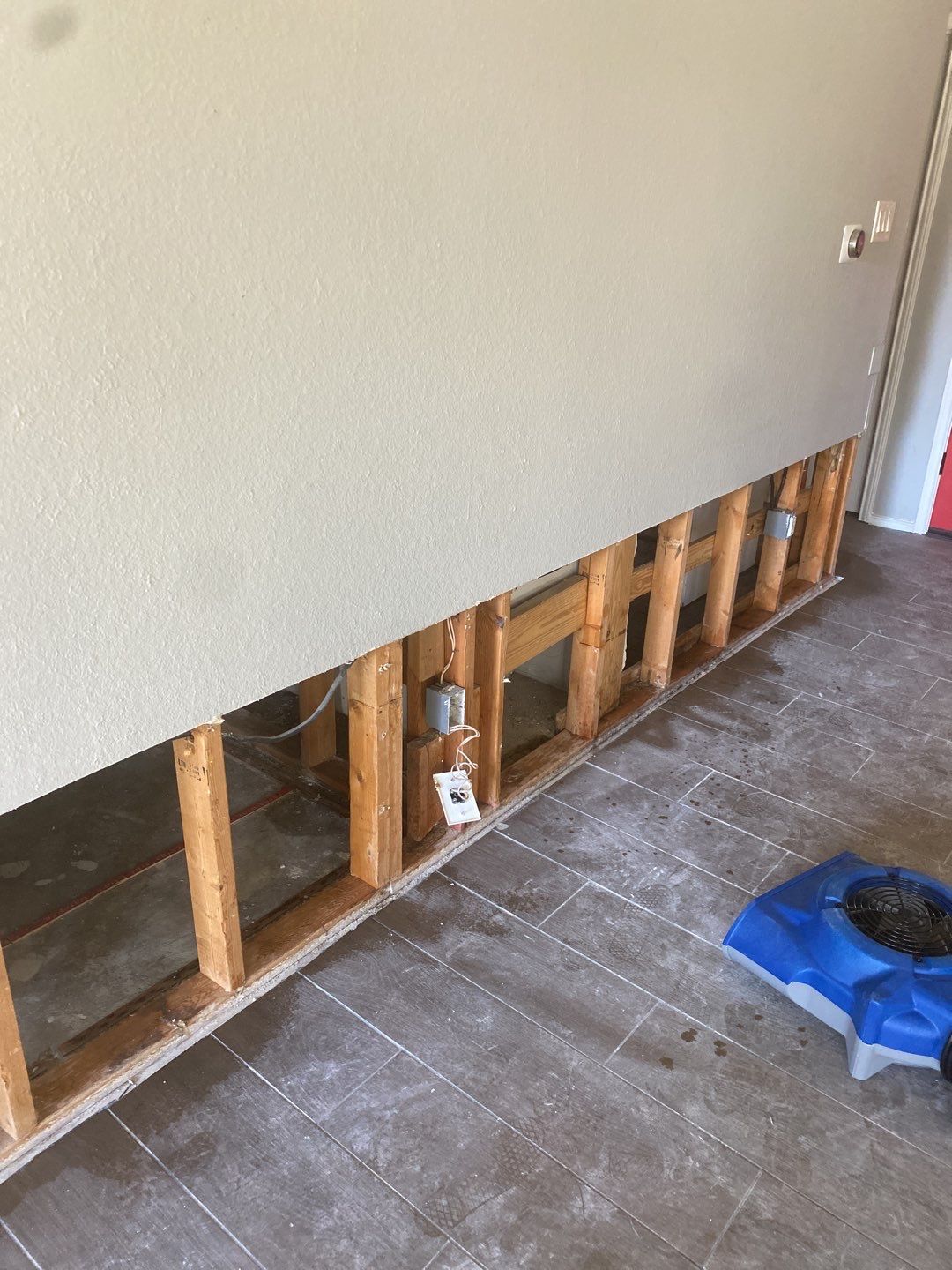 A pipe burst during the 2021 freeze left the home in dire need of immediate attention. We acted quickly to assess the damage, remove excess water, and implement thorough drying techniques to restore the space effectively. Our focus was on minimizing further damage to ensure the home returned to a safe and comfortable condition.