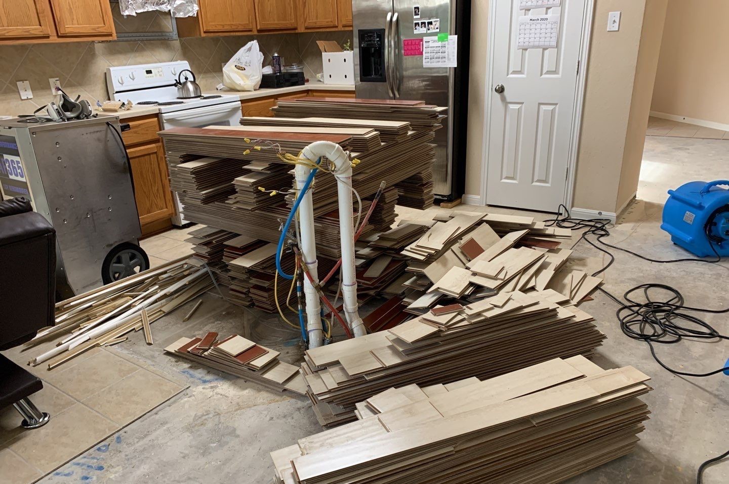 A pipe burst during the great freeze of 2021 caused significant water damage in the home. We quickly dispatched a team to assess the situation and efficiently dried the affected areas, requiring minimal demolition to restore the property. Rebuilding efforts were then initiated to ensure the home returned to its original condition.