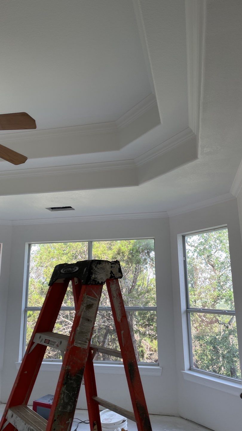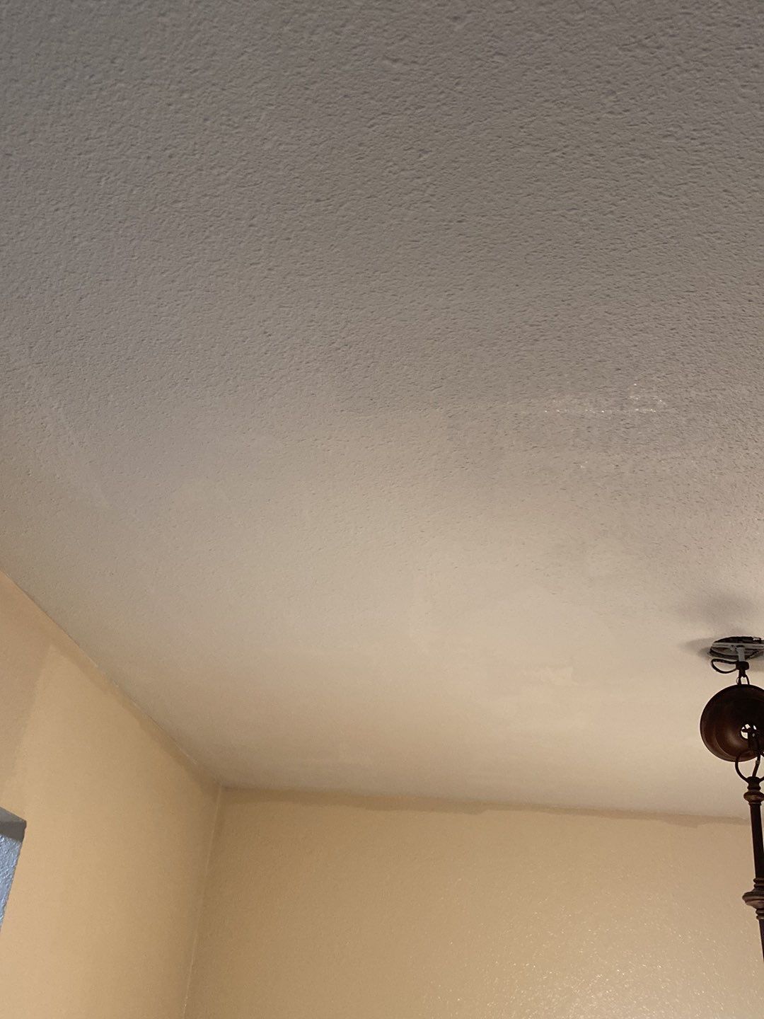 Water damage from a roof leak affected a significant area of the ceiling. We addressed the issue by expertly repairing the damaged sections and restoring the ceiling to its original condition, ensuring no signs of the repair remained. The result was a seamless finish that revitalized the room.
